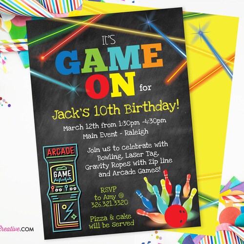 Game On Arcade Games Laser Tag Bowling Birthday Party Etsy